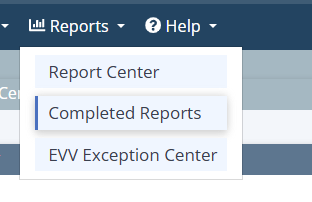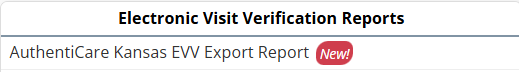 5. Once visits associated with the configured payers have been completed, navigate to the Report Center under the Reports tab and select the AuthentiCare Kansas EVV Export Report under the Electronic Visit Verification Reports section.
