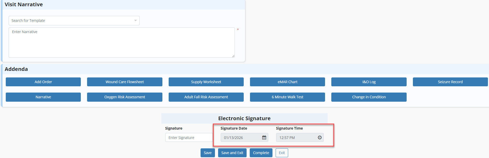 Axxess Home Care now automatically fills in the clinician’s signature date and time when documentation is completed. This enhancement ensures compliance by preventing incorrect times or dates on signed documents.