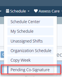 Once this permission is enabled, non-medical assessments and custom care plans completed by the user will flow to the Pending Co-Signature list under the Schedule tab.