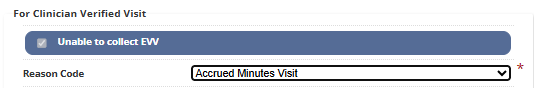 EVV Details screen ➜ Reason Code menu ➜ Accrued Minutes Visit