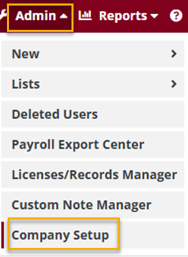1. Navigate to Company Setup under the Admin tab and select Electronic Visit Verification.