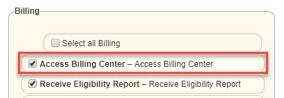 To access the Billing Center, users must have the Access Billing Center permission enabled.