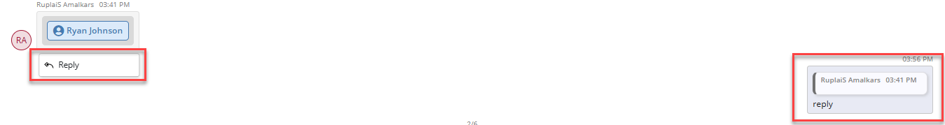 To reply to a specific message in the chat, select the message and click Reply. Once selected, a copy of the message will display in the new message field. Enter your message and click the send icon.