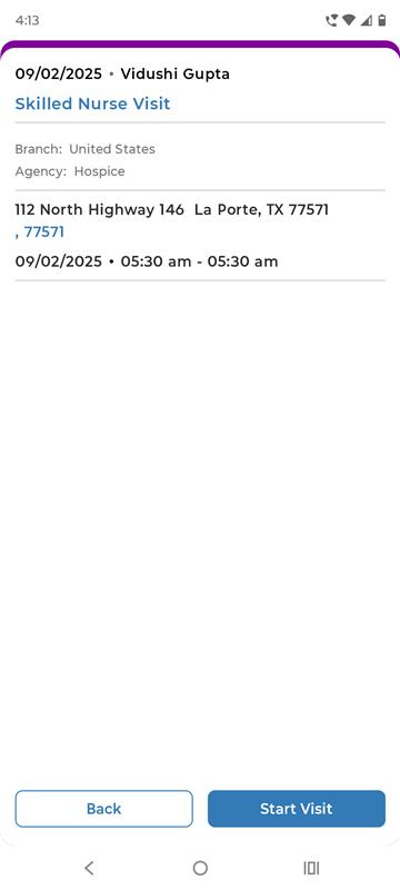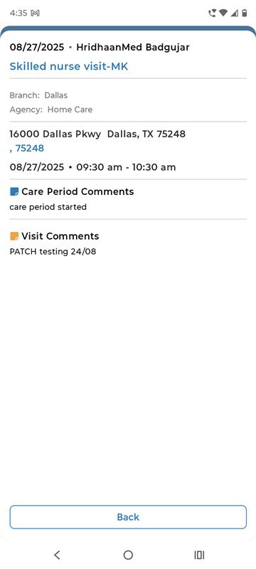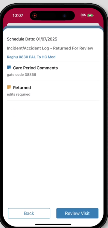 Tap the desired visit to view any comments, notes and additional details such as the agency branch.