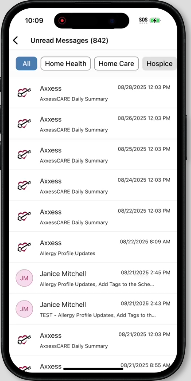 The Axxess Planner enhances operational efficiency by consolidating essential information, including past due and scheduled visits, detailed visit notes, messages and alerts, all in one convenient location.