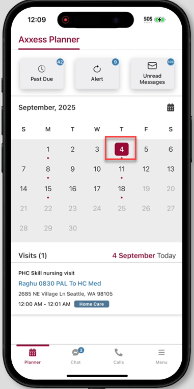 Once logged into the Axxess Connect mobile application, navigate to the bottom of the screen and tap the planner icon to access the Axxess Planner.