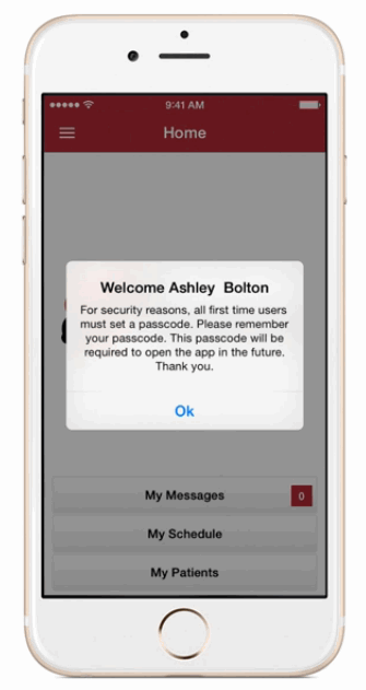 The PIN code provides an extra layer of security that ensures data remains private and HIPAA-compliant. Anytime you navigate out of the Axxess Home Health app, you will be prompted to enter your PIN code to log back in.