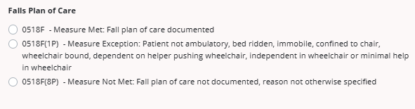 If the organization has falls plan of care enabled in the integration, the Falls Plan of Care section will appear with the following codes: