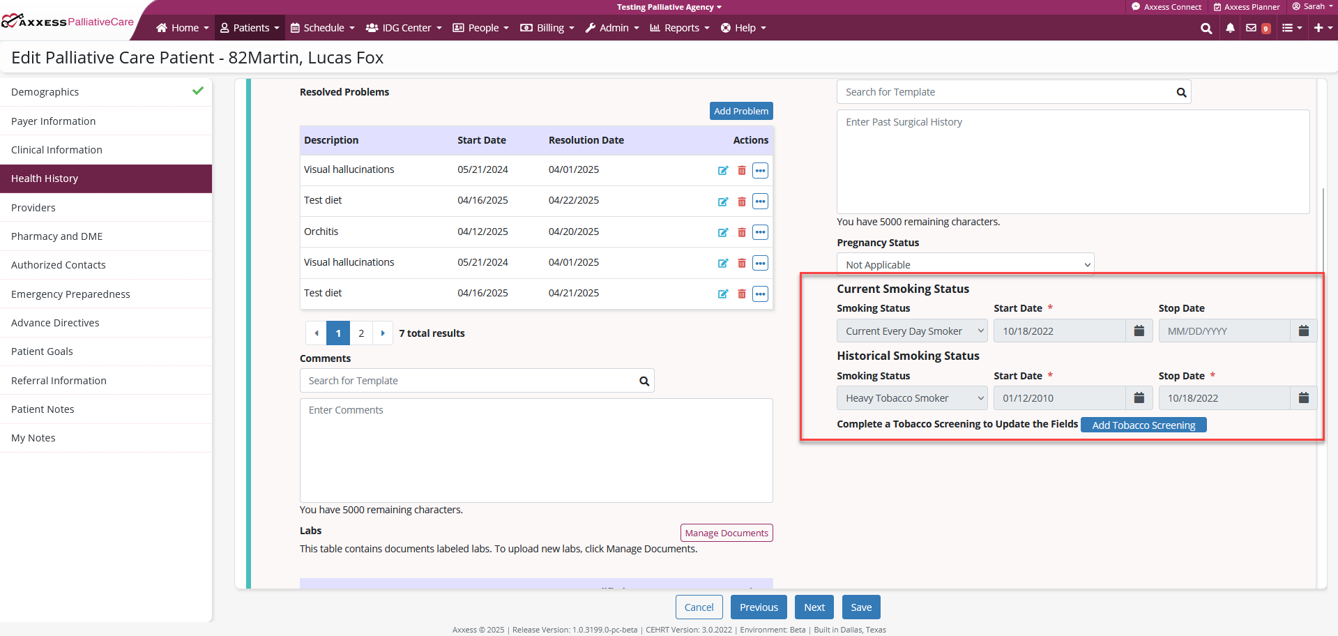 Axxess Palliative Care now provides a Tobacco Screening and Tobacco Cessation Intervention task, enabling clinicians to document tobacco use details, cessation readiness and intervention techniques.