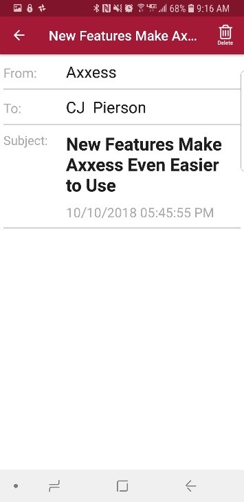 Tap on a message to view. Select the delete